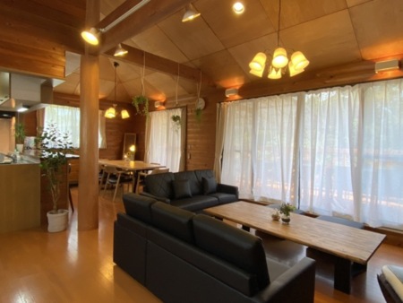 一棟貸しの貸別荘で、ペットも一緒に泊まれます。